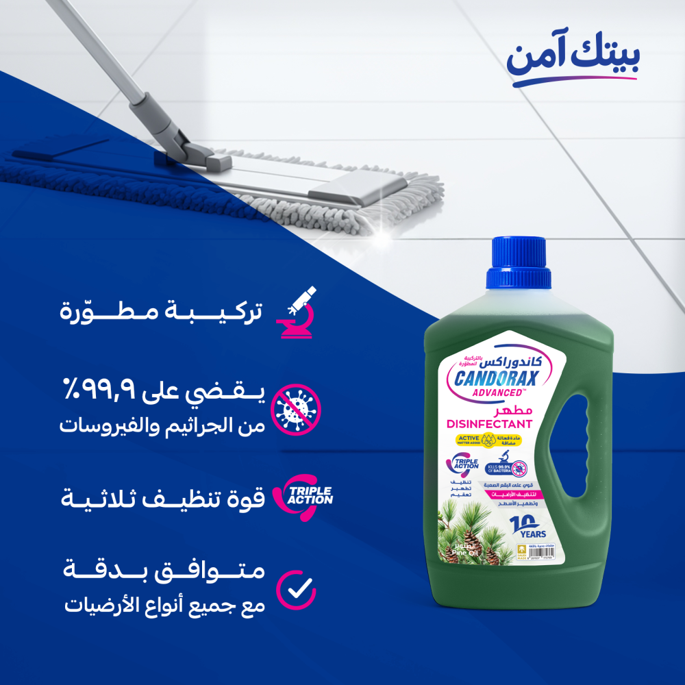 - تركيبة مطوّرة بدقة: لتقضي على 99.9٪ من الجراثيم والبكتيريا. لتحمي بيتك وعائلتك.